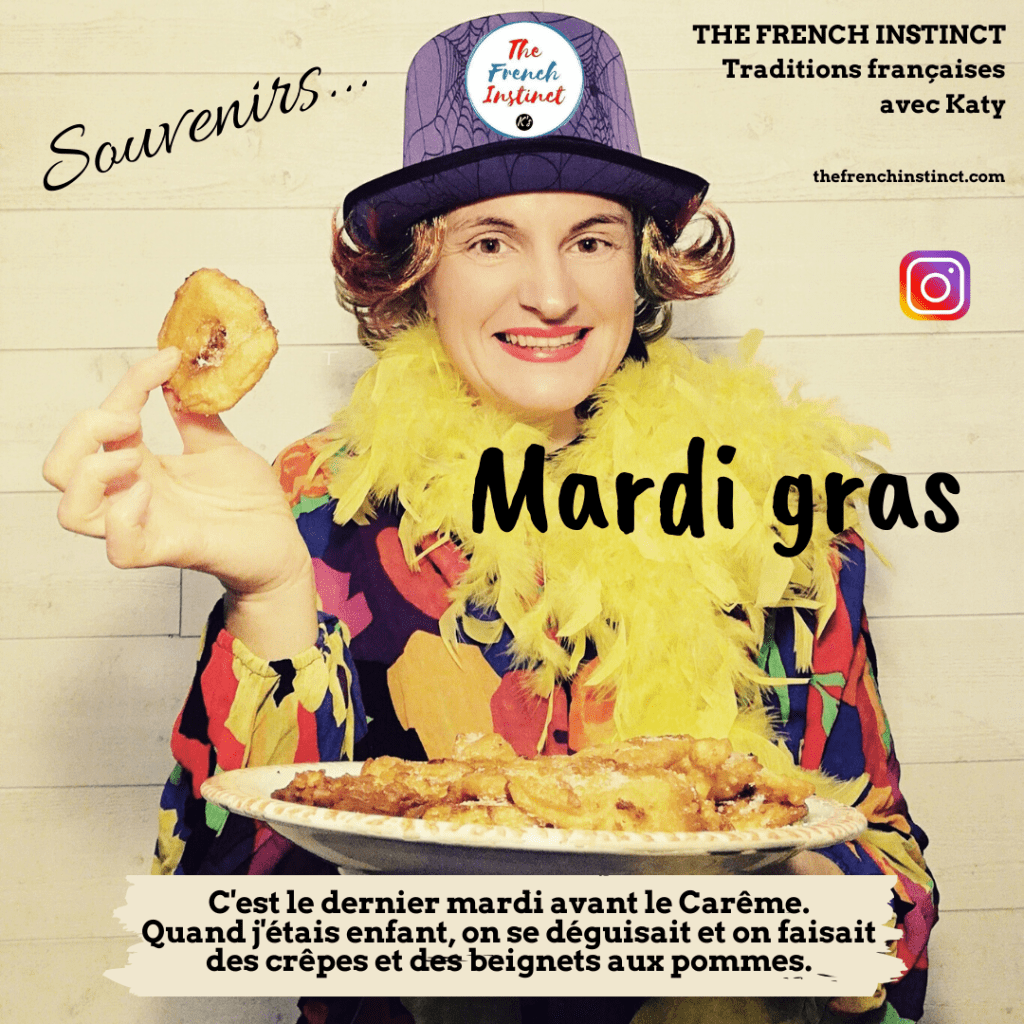 Quand j’étais enfant, à l’école primaire, on fêtait toujours mardi gras. Tous les enfants allaient à l’école déguisés et on s’amusait bien à la récrée. De retour à la maison, je savais que ma grand-mère aurait préparé des crêpes et des beignets aux pommes.