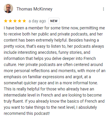 👉 Récemment, il m’a écrit pour me raconter comment les épisodes privés de The French Instinct, accompagnés des transcriptions, lui ont permis de faire de vrais progrès dans sa compréhension des Français dans la vie courante :