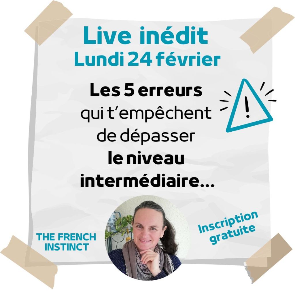 Lundi 24 février, j’organise un live gratuit afin de t’aider à comprendre les 5 erreurs qui t’empêchent de dépasser le niveau intermédiaire pour enfin comprendre les Français.